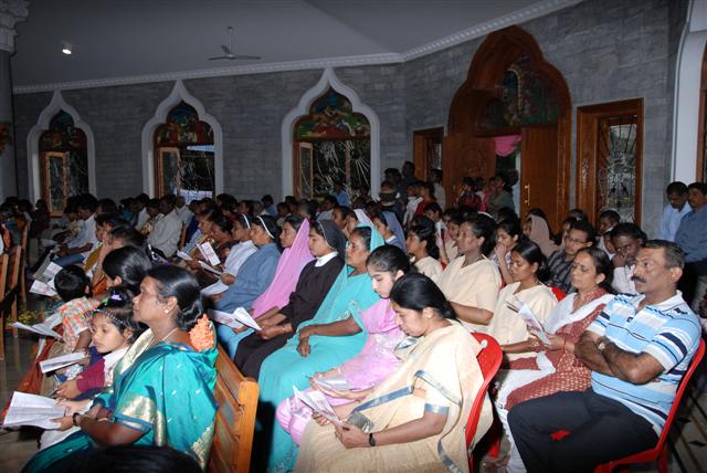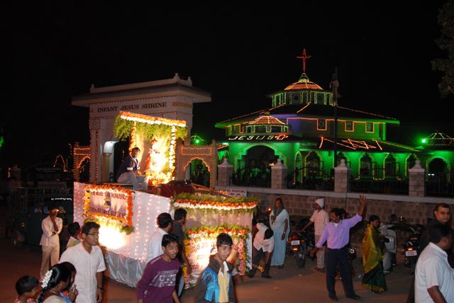 Feast Day : 09, Sunday 2011 Feast of Infant Jesus was celebrated on 9th january,2011 in a grand scale in Pushpashrama. Around 10,000 devotees visited the shrine during the novenas and feast day. Fr. C. Francis, Vicar General of Bangalore diocese was the main Celebrant. At 11.30 mass was held for the sick followed by Annasantharpane and evening 5pm solemn mass with band, Flower girls, Choir, Fireworks, Car procession, candle light procession and release of 2 cassettes composed by Fr. Wilfred Frank ocd - Jesus the life and Jesus the way, were the highlights of the feast. Jesus the inspirer of youth was the theme of the day.