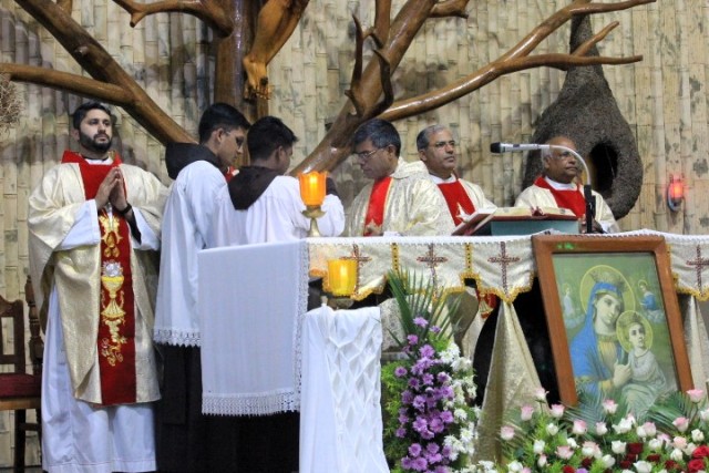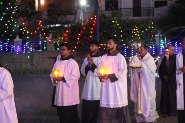 Eucharistic procession. Fr Oswald Crasta, the rector of the Shrine, led