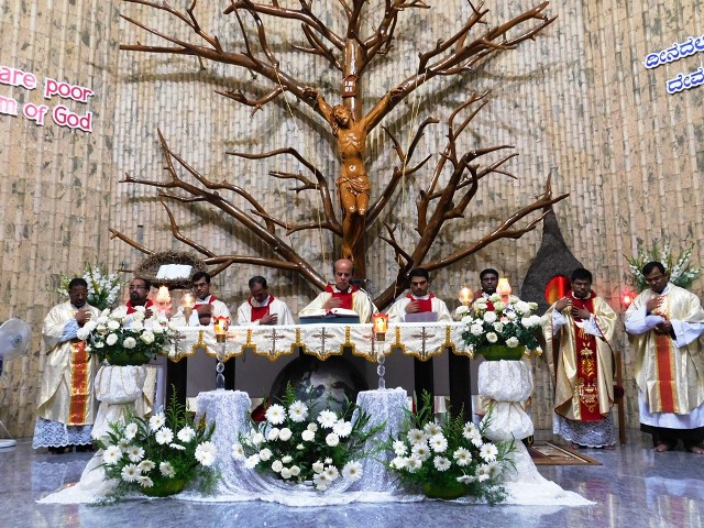 Pushpashrama who conducted the adoration. After the mass, bread was